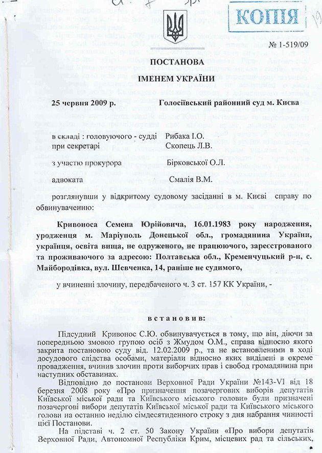 Одначе вибухнув скандал після того, як стало відомо, що Кривонос у 2009 році був оголошений у розшук і притягувався до кримінальної відповідальності, але був звільнений від відбуття покарання за актом амністії (згідно з фабулою кримінальної справи, Кривоноса обвинувачували в підкупі студентів Київського національного лінгвістичного університету та Київського національного університету ім. Т.Шевченка – Семен Юрійович роздавав гроші за те, щоби студенти на виборах до Київської міської ради в 2008 році проголосували за блок політичних партій «Блок Юлії Тимошенко»).